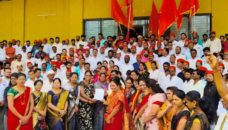 बाजार समितीतील छत्रपती शिवाजी महाराजांच्या पुतळ्यास अभिवादन करुन मोर्चास प्रारंभ करण्यात आला.जुन्या पुणे नगर रस्त्यावरून मोर्चा तहसिल कार्यलयावर नेण्यात आला.छत्रपती शिवाजी महाराजांच्या जयघोषाबरोबरच,एक मराठा लाख मराठा,आरक्षण आमच्या हक्काचे या घोषणा यावेळी देण्यात आल्या.यावेळी आखिल भारतीय मराठा महासंघाचे,शोभना पाचंगे,संभाजी कर्डिले ,रुपेश घाडगे ,रमेश दसगुडे , सुनील जाधव, नितीन पाचर्णे श्यामकांत वर्पे,सचिन जाधव, संजय बारवकर ,बाबूराव पाचंगे प्रभाकर डेरे,ॲड.किरण आंबेकर,रवींद्र खांडरे, संजय ढमढेरे,राजेंद्र जाधवराव, प्रियंका बंडगर,जिजाबाई दुर्गे,शशिकला काळे,उषा वाखारे, विजया टेमगिरे,वैशाली गायकवाड,श्रुतिका झांबरे,सविता बोराडे,वैशाली ठुबे,ज्योती हांडे, प्रियंका धोत्रे,प्रा.अशोक शेळके,डॉ.नारायण सरोदे ,संजय शिंदे,प्रकाश थोरात,पोपटराव ढोकले,सुशांत कुटे,अविनाश जाधव, रजुद्दिन सय्यद,राहील शेख,कुणाल काळे,उमेश शेळके,अनिल डांगे,हाफिज बागवान,ॲड.परेश थोरात,अनिल सोनवणे,निलेश जाधव,सागर नरवडे,अविनाश घोगरे,बाबाजी गलांडे,गणेश घाडगे,महेश देशमुख,रावसाहेब चक्रे,अशोक भोसले यांच्यसह विविध राजकीय पक्ष ,सामजिक संघटनाचे पदाधिकारी आदी मोर्चात सहभागी झाले.मनोज जरांडे यांनी केलेल्या मागण्या मान्य कराव्यात,संपूर्ण मराठा समाजाला कुणबी प्रमाणपत्र तात्काळ देण्यात यावे.आंदोलक मराठा समाजबांधवांवर दाखल गुन्हे तात्काळ मागे घेण्यात यावे.आदी मागण्या निवेदनात करण्यात आल्या.जालना येथील लाठीमारीच्या घटनेच्या यावेळी निषेध करताना दोषीवर कारवाईची मागणी करण्यात आली.