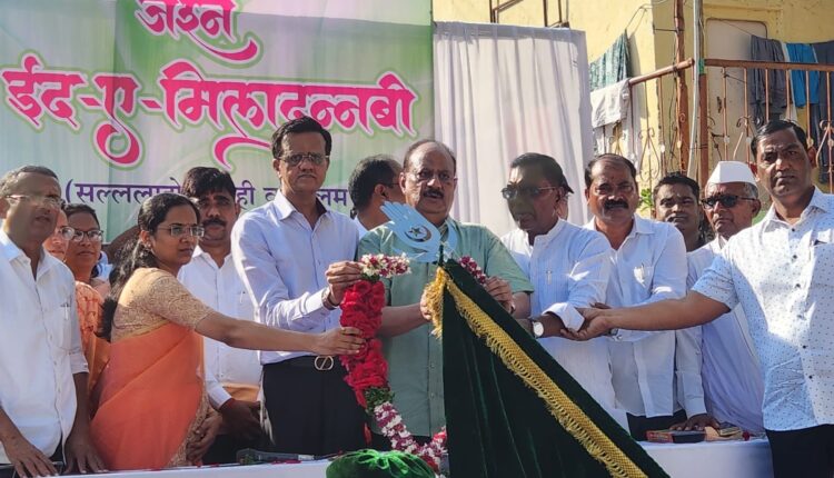 दरम्यान इस्लाम धर्म ध्वजाला हार घालून मिरवणुकीस प्रारंभ करण्यात आला.अतिशय सुंदर अशा पेहरावात चिमुकले या मिरवणुकीत सहभागी झाल्याचे दिसून आले.शहरातील मुख्य मार्गावरून मिरवणुकीने प्रस्थान केले.चौका चौकात मिरवणुकीचे सर्व धर्मियांनी स्वागत केले.अनेक ठिकाणी मिरवणुकीतील बांधवांना शीतपेय,खाद्यपदार्थांचे वाटप करण्यात आले.फिरोज बागवान यांनी स्वागत व सूत्रसंचालन केले,जाकिर खान पठाण यांनी आभार मानले,